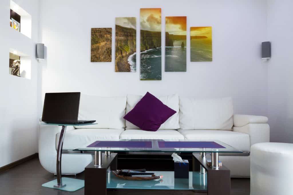 Jeśli chcesz ułożyć obrazy wieloczęściowe w rzędzie, musisz wziąć pod uwagę kilka rzeczy jednocześnie. Grupy obrazów zawsze wyglądają lepiej na ścianie, jeśli są ustawione obok siebie. Aby to sprawdzić, należy najpierw położyć obrazy wieloczęściowe na podłodze. Da ci to wyobrażenie o idealnej odległości między poszczególnymi zdjęciami. Następnie powinieneś zastanowić się, gdzie chcesz powiesić swoje zdjęcia w pokoju. Jeśli to możliwe, powinieneś zawsze wieszać obrazy wieloczęściowe wyśrodkowane na ścianie na wysokości oczu. Nie tylko przyciągnie to wzrok gości do serii obrazów, ale także sprawi, że pokój będzie wyglądał o wiele bardziej harmonijnie.